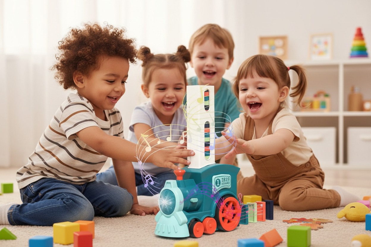 Promueve el pensamiento crítico al desafiar a los niños a planificar estrategias para el tren de dominó, mejorando sus habilidades cognitivas y de concentración.